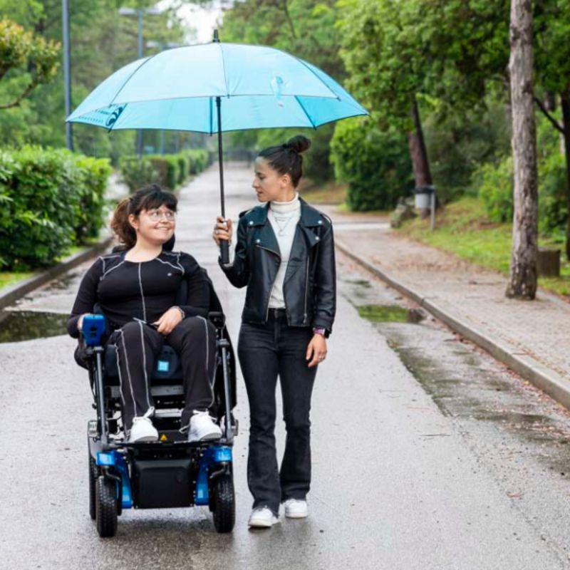 Da una parte, una persona con disabilità che vuole vivere con più libertà.